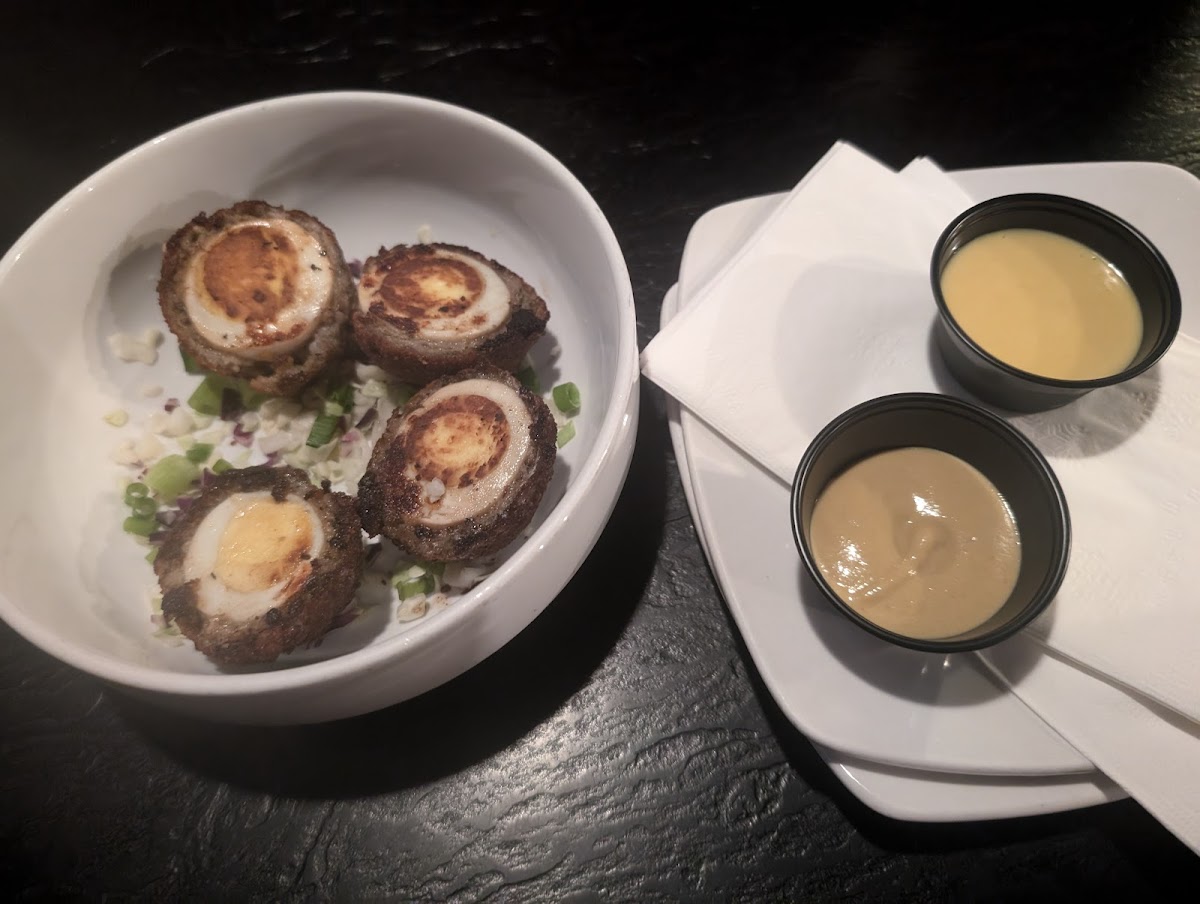 This was a Facebook recommendation from a stranger so I didn't know what was coming. But first of all, it is super cute when you walk inside. A pub feel yes, but one that is well cared for. Then there is the cute seating area with plush red seats and cozy corner booths and the dark wood....it just not the usual for Tucson and it was a lovely change. The food selection had some traditional fare like french dips, burgers, and salads, but here where the magic happened for me. The menu also had dishes I've never tried before, like Scottish Eggs and sticky toffee pudding! Both of which I had to try and they were yummy! I need to come back to this place for sure.
